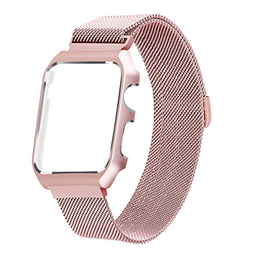 Apple Watch Band Milanese Loop,LikeItY Stainless Steel Magnetic Band with Metal Case for Apple Watch Series 1/2 - Shockproof Protective Bumper Replacement Strap(38mm Rose Gold)
