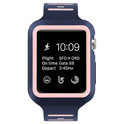 1 x 42mm Midnight Blue/Vintage Rose Protective iWatch Case, 1 x 42mm Midnight Blue/Vintage Rose Silicone Sport iWatch Band