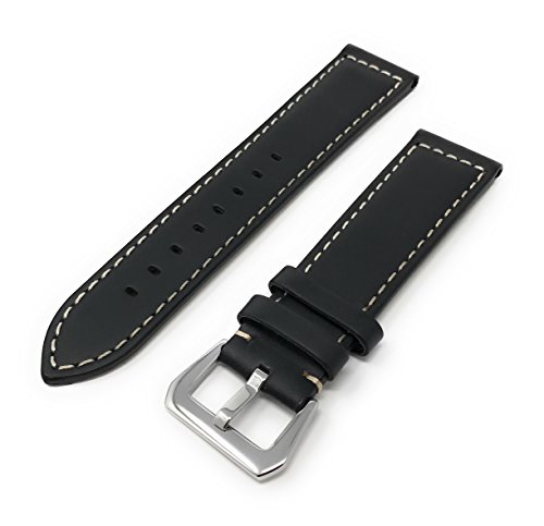 24mm width panerai style leather watch band original style stainless steel buckle black color watchband by jp leatherworks